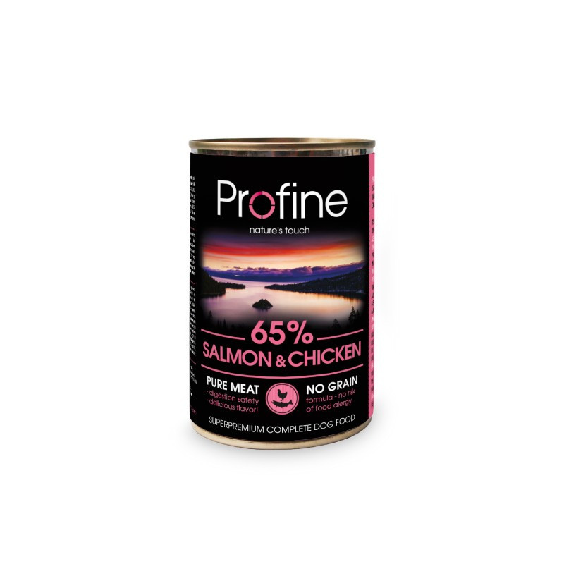 Receta 65% Salmón y pollo baja en cereales es única (combina patatas de fácil digestión, tomates y maíz) y proporciona energía que el animal puede utilizar de forma eficaz sin causar efectos secundarios, como alergias alimenticias, intolerancias o problemas digestivos o intestinales.